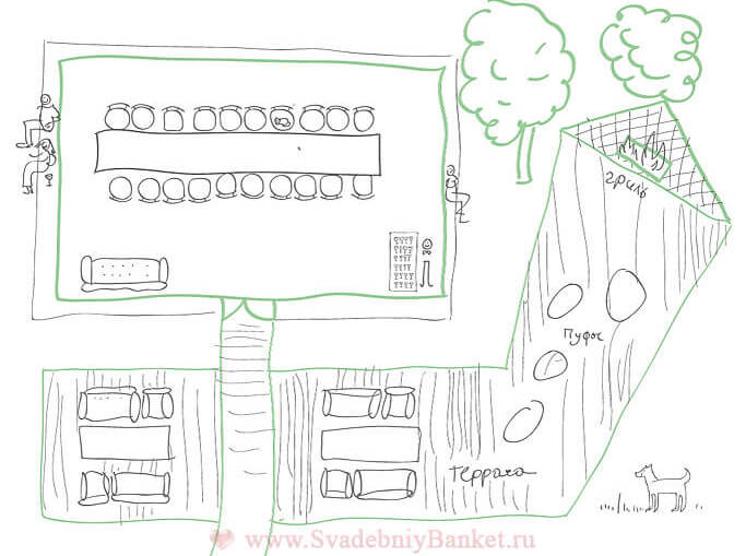 до 60 гостей за прямоугольными (всего до 120 человек)